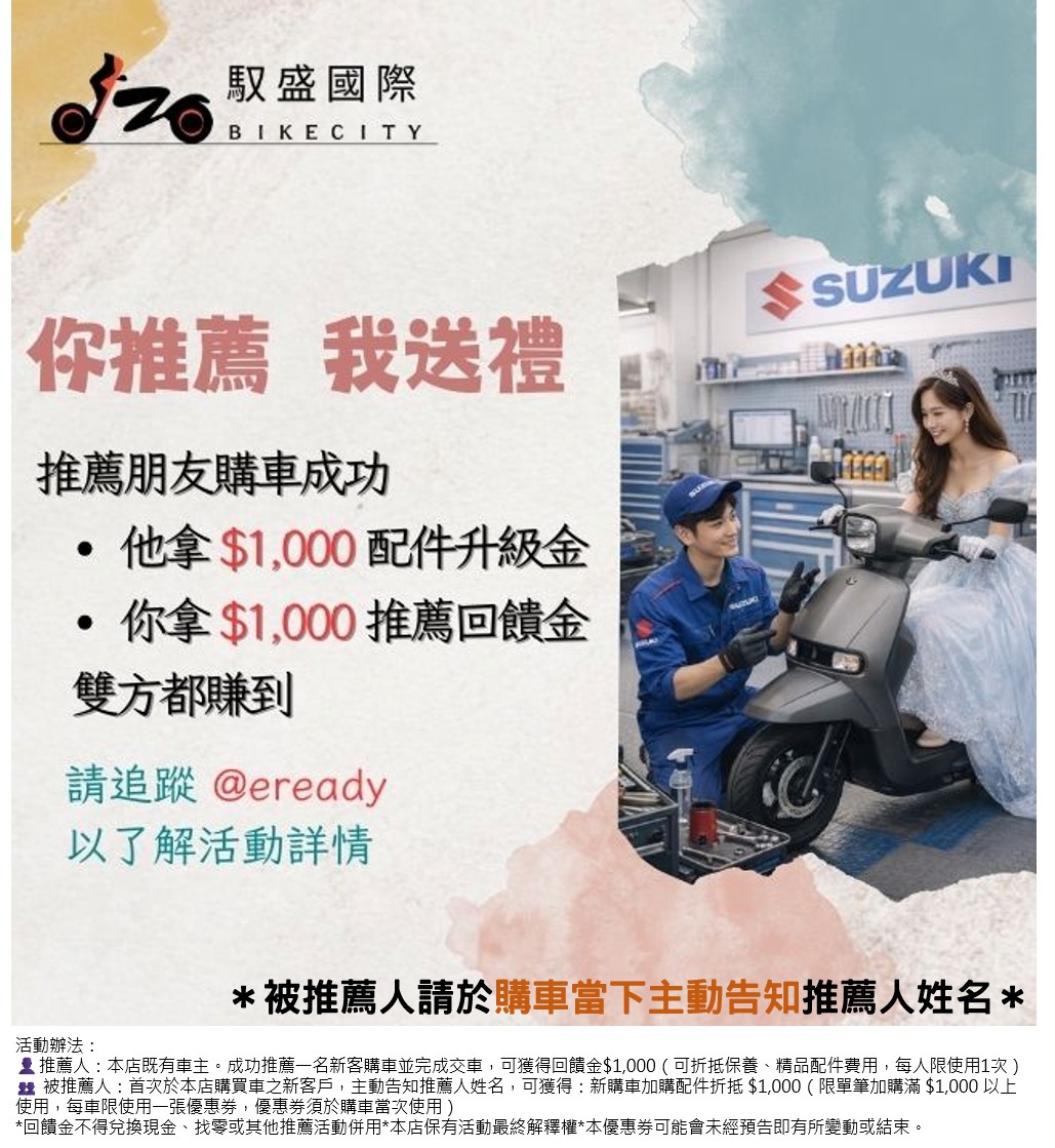 【SUZUKI車主推薦活動!推薦好友就送錢!】