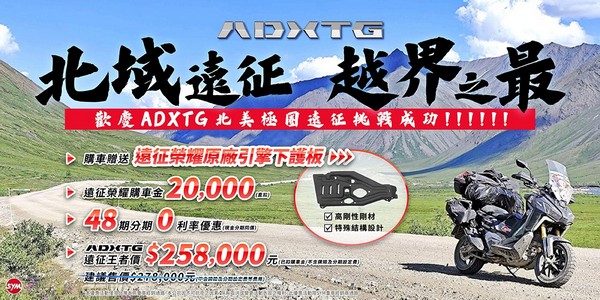 ADXTG優惠價258,000元(已扣購車金/不含牌險及分期設定費)=建議售價$278,000(不含牌險及設定費等費用)-遠征榮耀購車金20,000元(直扣)