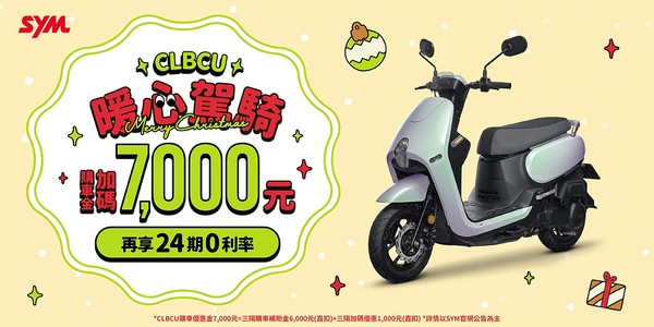 CLBCU購車金加碼7,000元=三陽購車補助金6,000元(直扣)+三陽加碼優惠1,000元(直扣)。