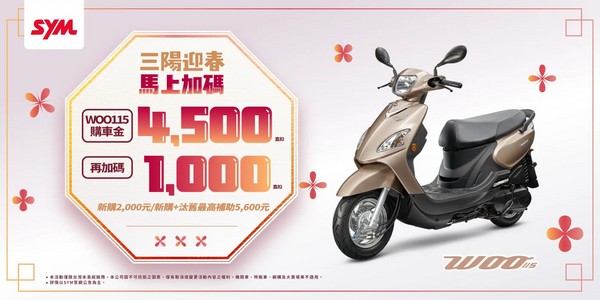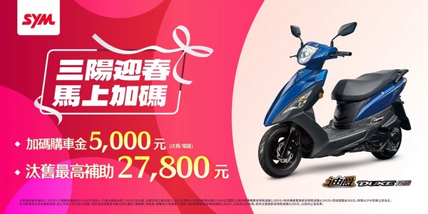 迎新春三陽加碼購車金3,000元(直扣)