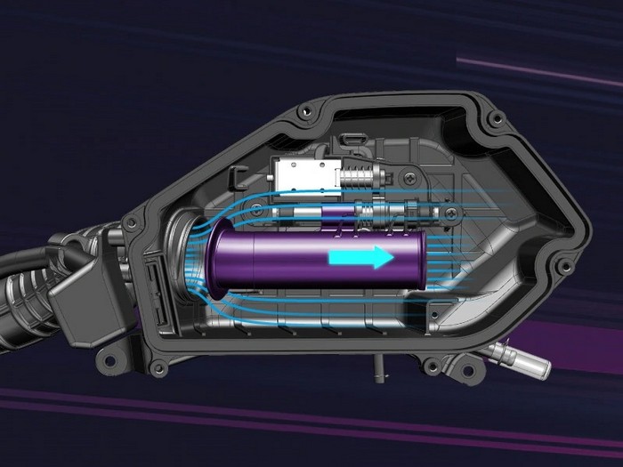 達到高轉速時,電磁閥控制低速進氣管切離進氣道口,讓進氣道直接吸取大量空氣,以創造高轉速時的馬力提升10%。