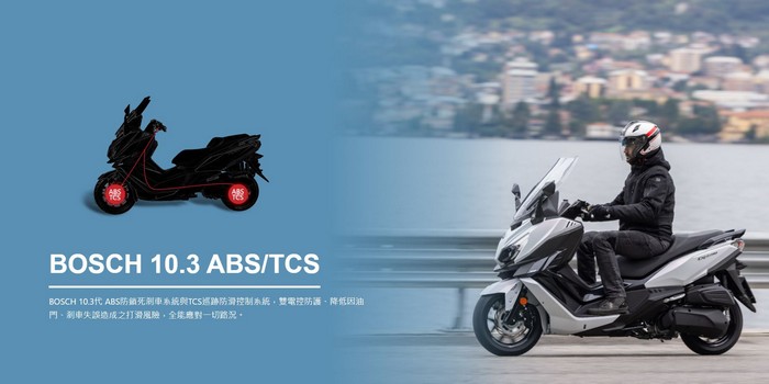 BOSCH 10.3代 ABS防鎖死剎車系統與TCS巡跡防滑控制系統,雙電控防護、降低因油門、剎車失誤造成之打滑風險,全能應對一切路況。